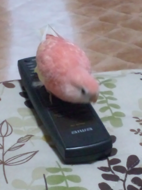 放鳥すると必ずリモコンと遊んでる桃子です。