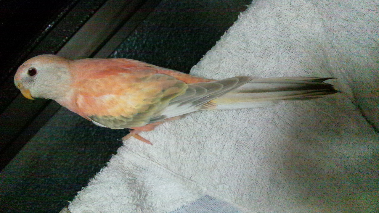 ピンクに薄っすらと黄色がのっている尾羽です。