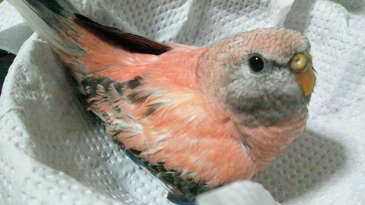 巣箱から追い出されたのか外に居ました。