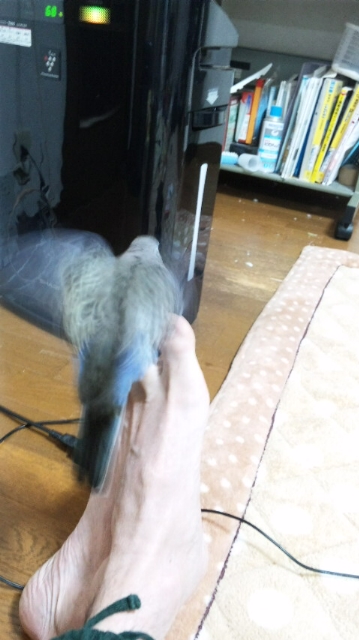 羽根を膨らませながらばたつかせて足ふみしながら踊っています。