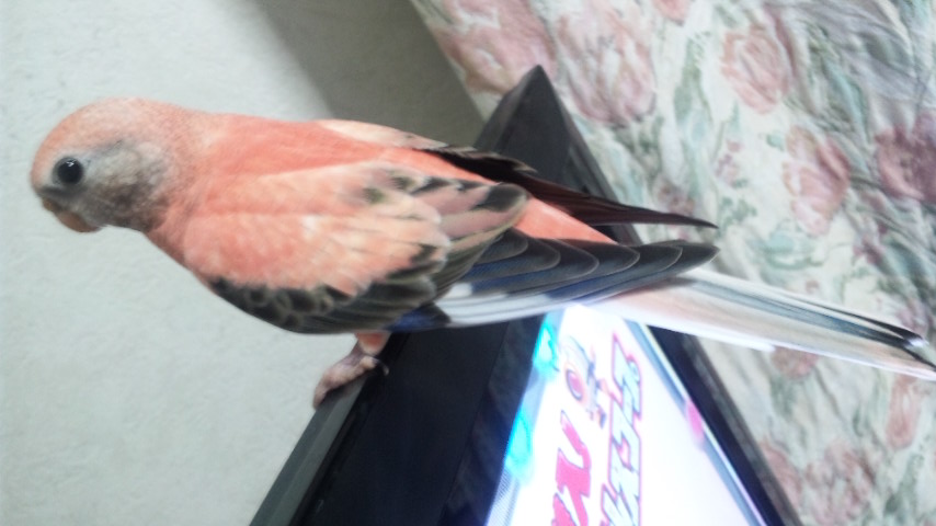 放鳥して最初にとまった場所はテレビでした