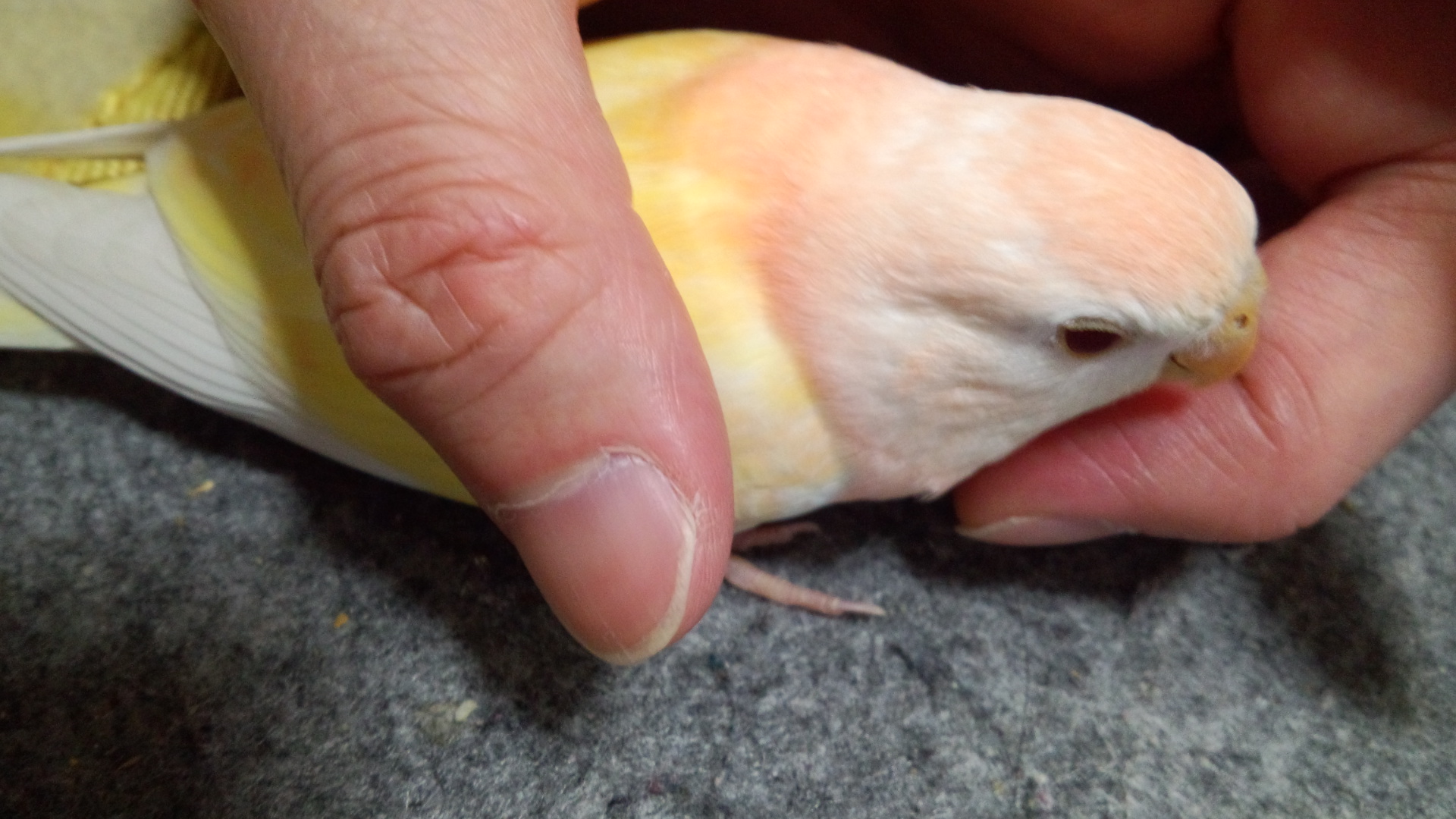 二日ぶりで放鳥したら甘えて離れません。