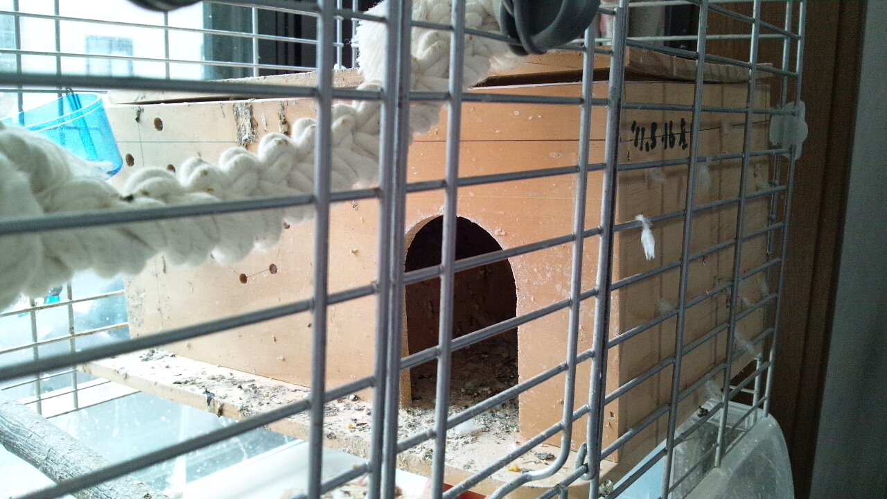 桃吉夫婦の巣箱はオカメ用横型改です。