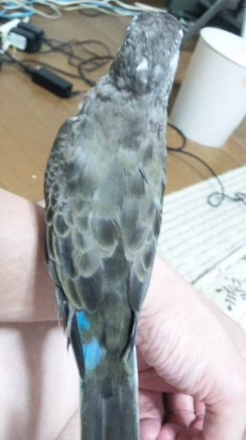 両翼の風切り羽が生えてきました(黒い羽です)