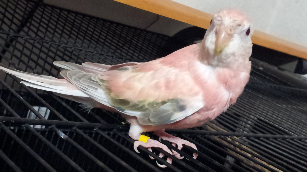 少し濃い桃色の羽が生えてきています。