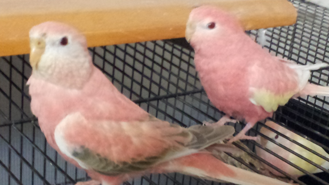 外観は同じなので、2羽並べて桃色が若干濃いのが桃です。