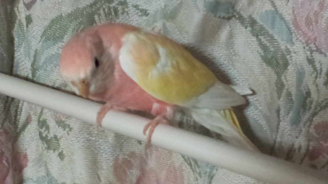 外観は同じなので、2羽並べて桃色が若干濃いのが桃です。