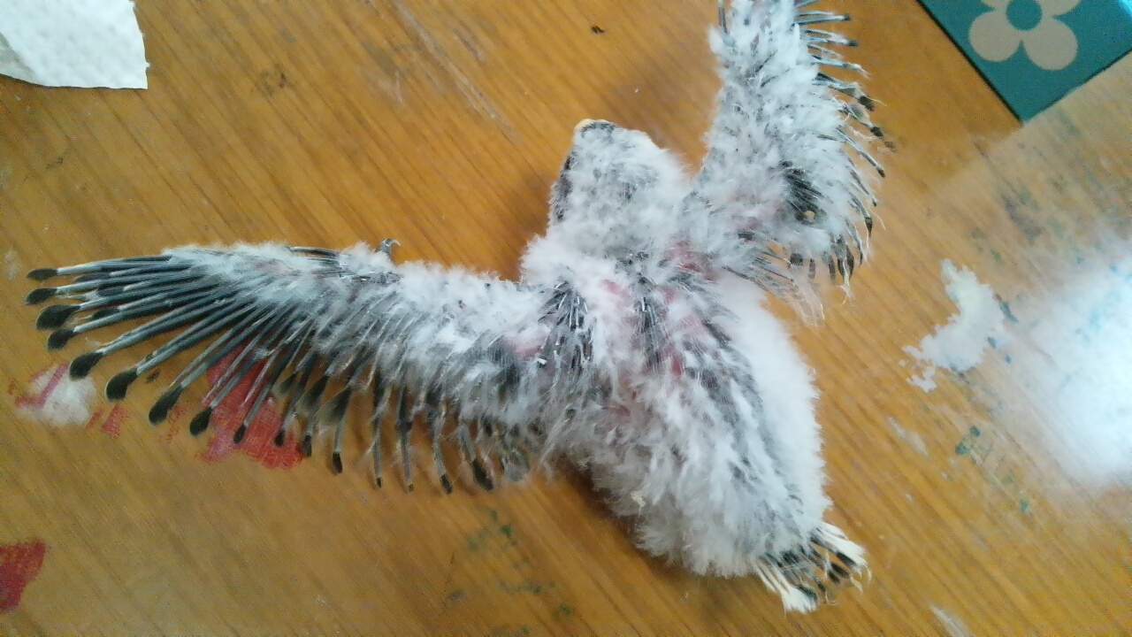 以前の写メですが大きく羽ばたいているノーマル雛です。
